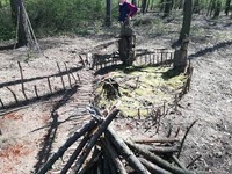 Hrad v lese on 18 duben 2020 Postavila jsem se ségrou Adélkou, tatínkem a maminkou lesní hrad a domeček. Anička