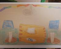 Stůl je připravený na oběd s kapesníčky a hrnečky.